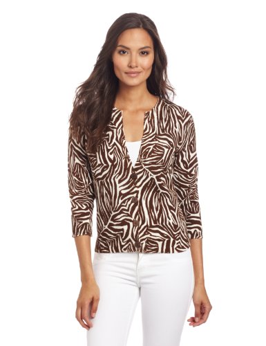 Best Price with Jones New York Women's 3/4 Sleeve Drop Button Animal Cardi, Sienna Brown/Cream, Small - Best Deal!! women sweaters