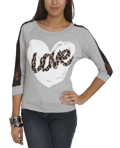 Low prices !! women sweaters. The Wet Seal Women's Leopard Printed Heart Sweater M Heather Grey This cute and uber cozy sweatshirt features a soft heather knit body with a large heart print design in front, leopard print embellished "love", scoop neckline, 3/4 length raglan sleeves with see-through lace panels, and banded trim.