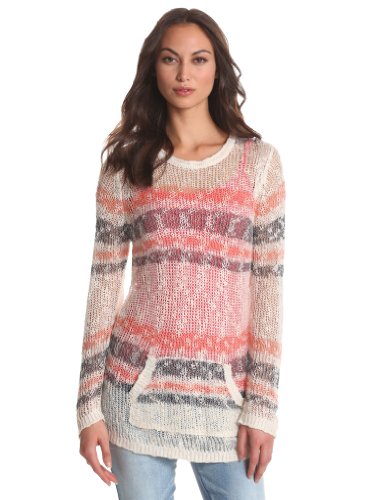 The Low prices with women sweaters. The QSW Women's The Crescent Sweater, Stone, Large Product Description of Quiksilver women's "the crescent sweater" striped open knit tunic sweater with kangaroo pocket detail.