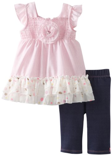 The Low prices with clothing and dresses|B005DEYS2E. The Youngland Baby-Girls Newborn Stripe Dress Legging Set Sleeveless subtle pink and white stripe dress with smocked bodice and fun flower detail; chiffon ruffle skirt and knit denim legging Youngland Baby-Girls Newborn Stripe Dress Legging Set clothing and dresses|B005DEYS2E