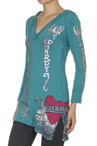 Buy Ed Hardy Woman's Long Sweater Hoodies EHW320 (Small, Teal) from AMAZON.COM.