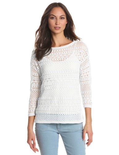 The Leo & Nicole Women's Missy Open Weave Sweater, White, Large The best deal with women sweaters