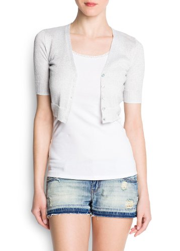 Find Low price on women sweaters. The Mango Women's Cropped Metallic Cardigan, White, L Cropped metallic cardigan with short sleeves, v-neck, pearly button fastenings, ribbed cuffs and hem.
